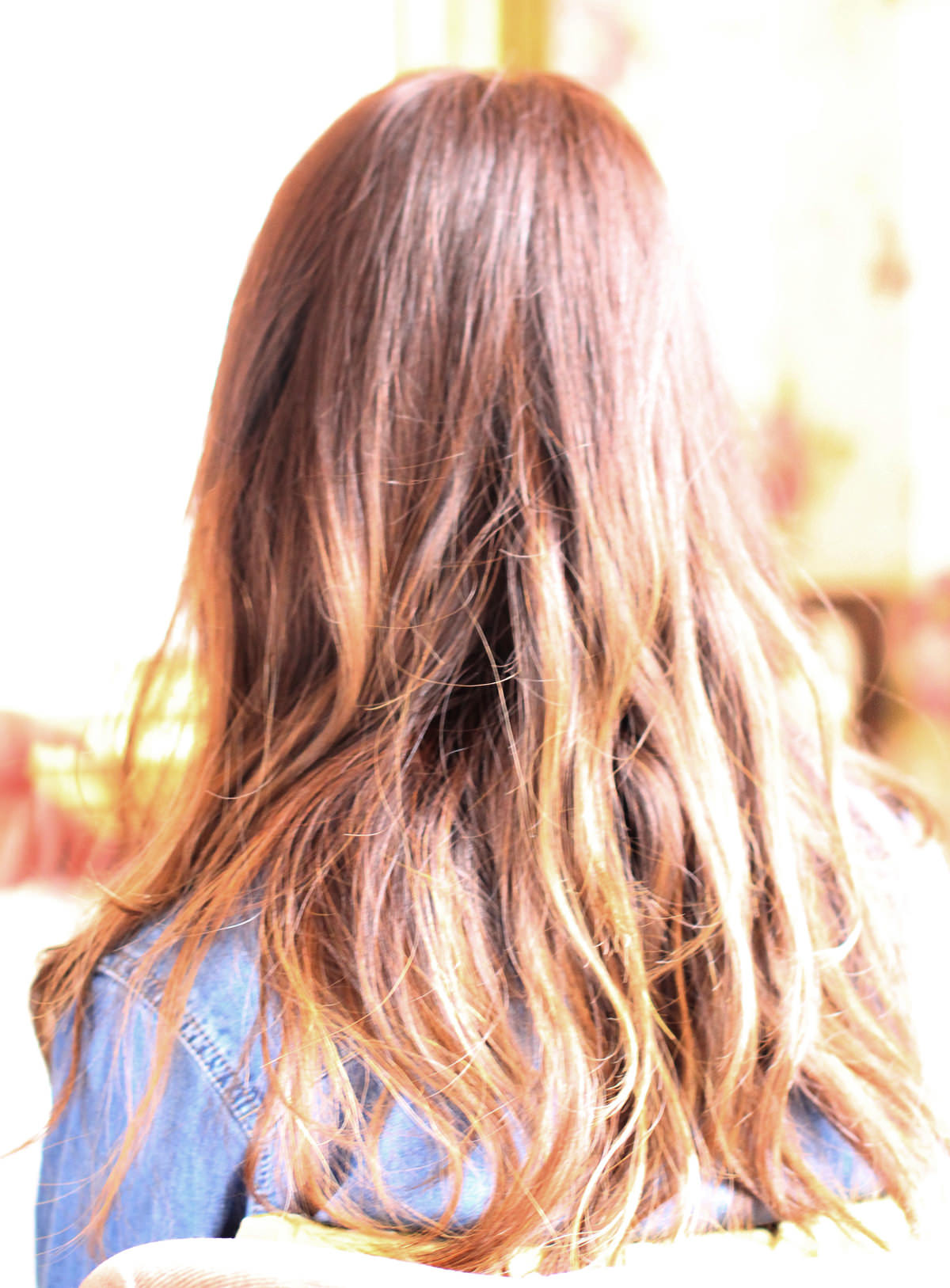 極ゆるカールが大人かわいいロングスタイル内側にハイライトを入れ重くなりがちなロングスタイルに軽さを♫ 軽くコテで巻き、束感を。