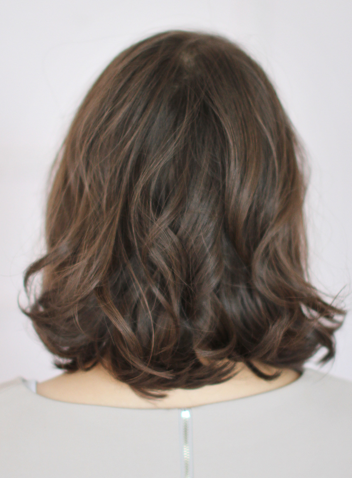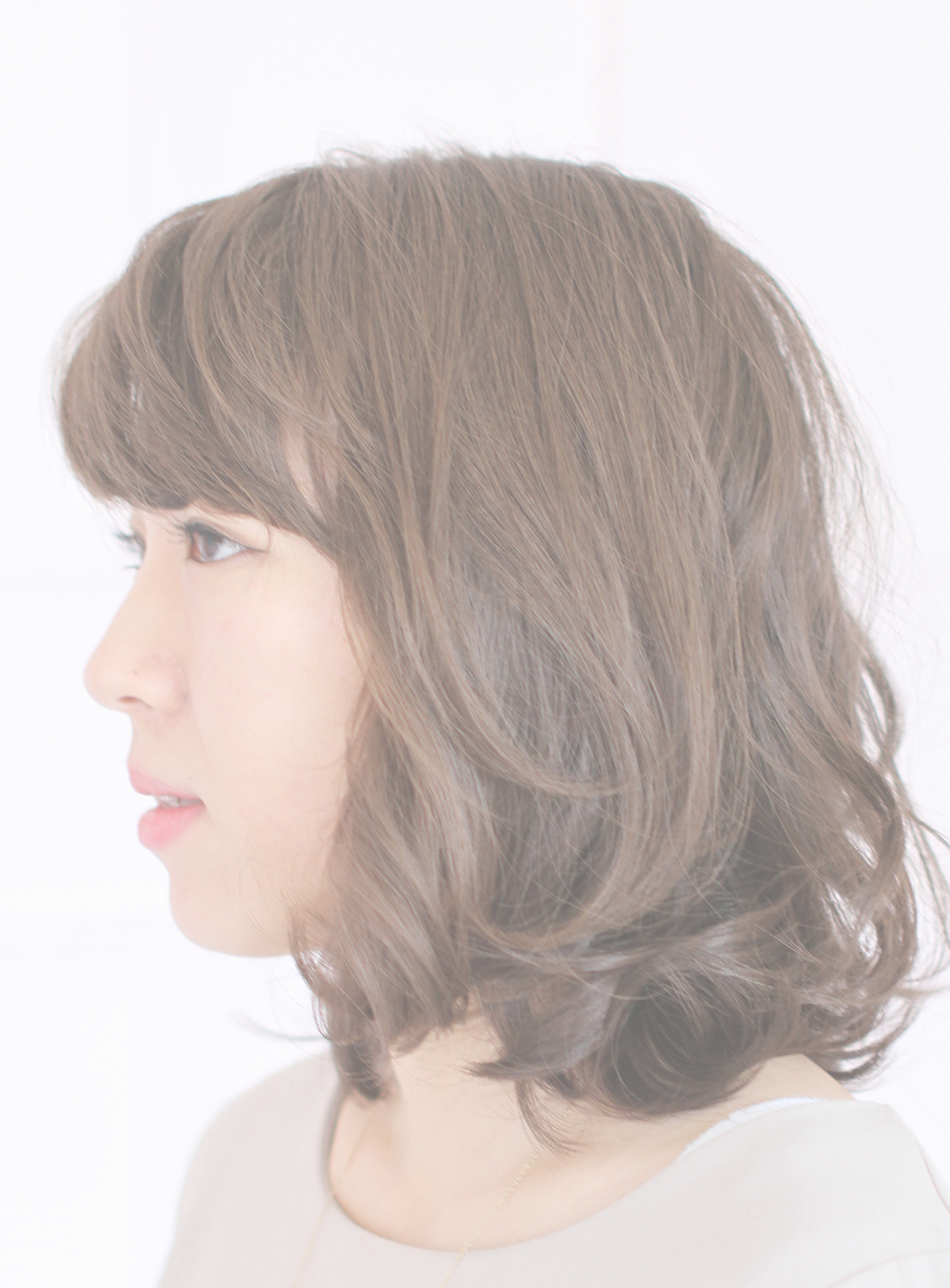 ふんわりミックスカールでボリューム抑えめのボブスタイル顏回りと表面のみにレイヤーを少し入れ長めのボブスタイル。